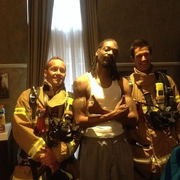 В одном из мельбурнских отелей сработал датчик дыма, и на место происшествия тут же прибыла команда пожарных. Выяснилось, что в злополучном номере поселился известный американский рэпер Снуп Догг, где он мирно покуривал травку и гасился на X-box. Музыкант насколько обрадовался прибывшей компании, что начал вместе с ними фотографироваться.