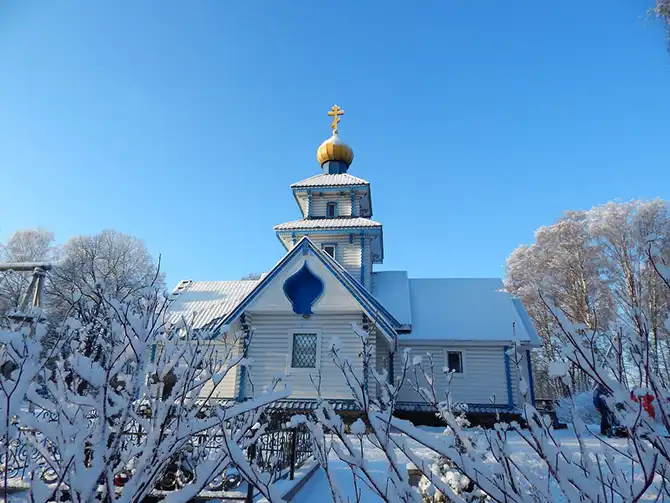Нашей целью был заброшенный пионерлагерь «Икар». Церковь во имя святителя Николая Чудотворца первой встретила нас по дороге.
