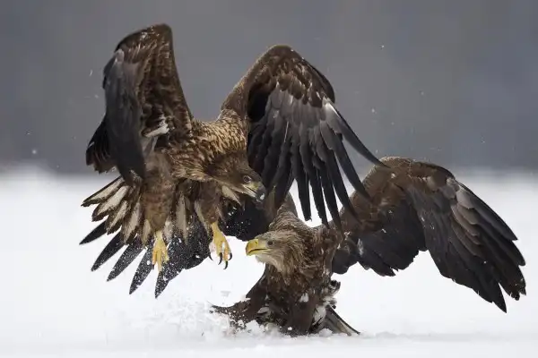 37-летний фотограф дикой природы Сильвия Домарадзка (Sylwia Domaradzka) запечатлела двух орланов-белохвостов, которые яростно боролись за пищу в лесу под Варшавой.