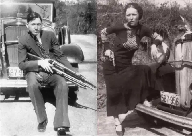 Бонни и Клайд — известные американские грабители, действовавшие во времена великой депрессии. Убиты в 1934 г. агентами ФБР. Бонни на момент убийства было 24 года, Клайду — 25 лет.