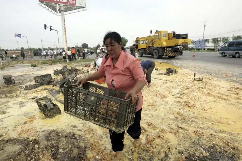 Если в Китае в результате ДТП переворачивается грузовик и товар оказывается на земле, то бойкие жители китайских городов и сел не теряются и ловко начинают собирать все что рассыпано на земле и уносить домой.