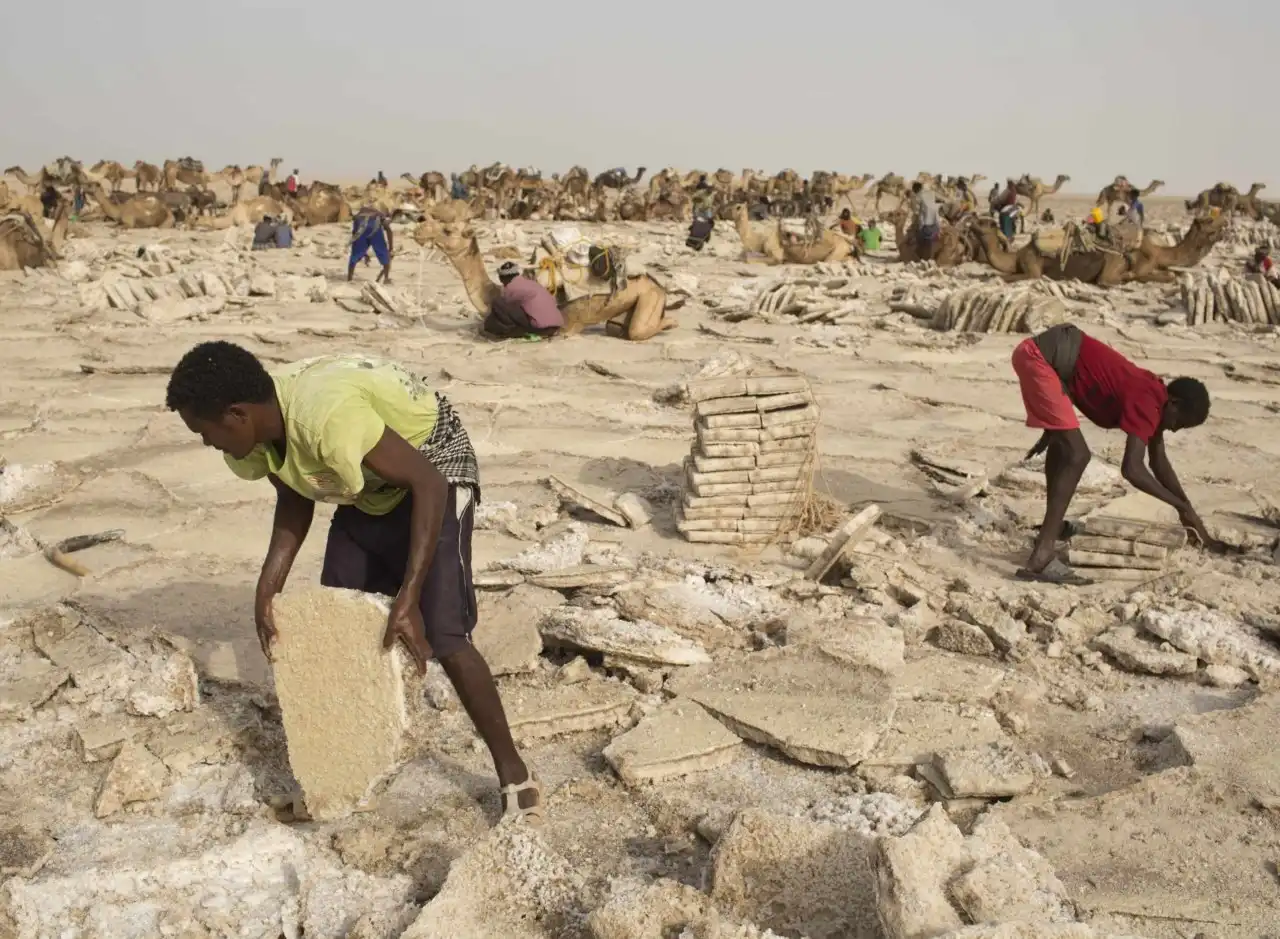 Но традиция добывания соли из плит земной коры и её перевозки на верблюдах постепенно изживает себя: через северный регион Афар (Afar) пролегла асфальтированная дорога.