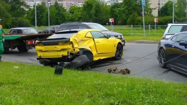 Как его можно было не увидеть - загадка, ибо цвет, солнце и люстра из светодиодов и ксенона вроде бы не оставляла шансов, но водитель пятерки это сумел, при этом его скорость была выше Chevrolet. Жигуль по касательной на встречном ходу зацепил КАМАРО. Итоги на фото.