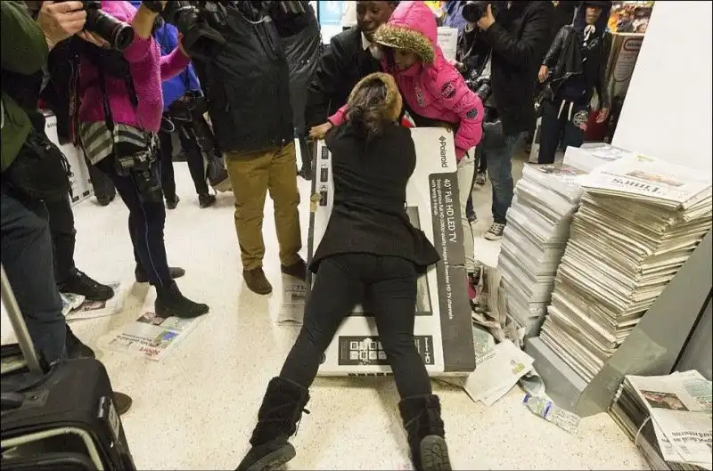 Большая охота за скидками началась. Они там реально дерутся друг с другом. За последний товар с полки могут лишить здоровья — съездить по физиономии или применить газовый баллончик. Один из гипермаркетов в Манчестере даже прикрыли на полчаса из-за боевых действий между покупателями в торговом зале.
