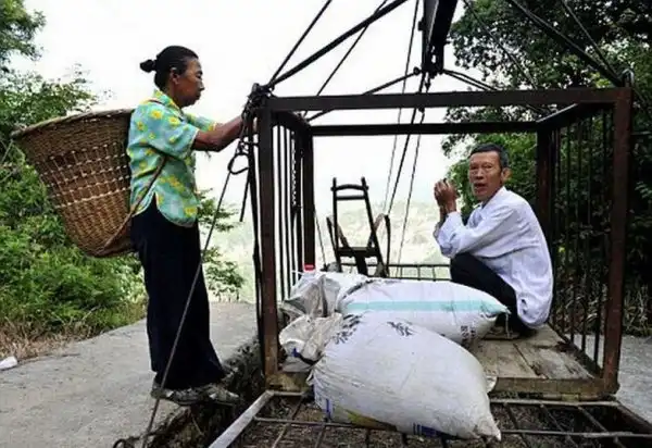 Чтобы добраться до ближайших магазинов и учреждений, жители этой деревушки должны путешествовать приблизительно один километр по канатной дороге.