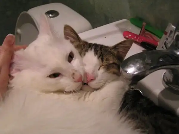 Строили дом, и на стройку пришли 2 котенка (3 котенок на фото - в гости забежал от соседей). Они делали все вместе, бегали, играли, спали, жили в недостроенном доме даже при том, что там никого не было. Когда мы приезжали, они как-то чувствовали и выбегали встречать в тот момент, когда машина даже не повернула еще на участок. Лето кончилось, на зиму никак не могли мы их оставить в холодном доме, пришлось взять домой. Вот так уже 3 года с нами 2 самых замечательных и умных котика
