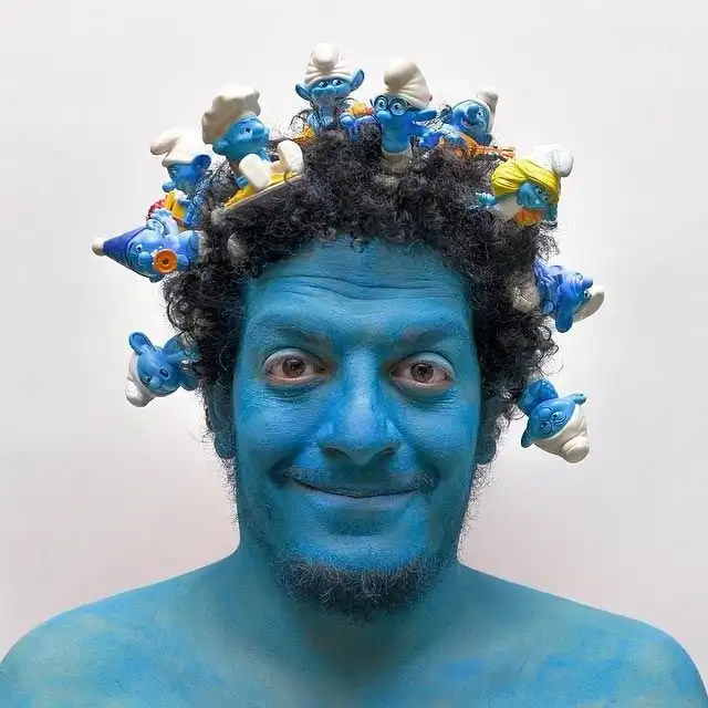 В хорошем смысле безумный фотограф из Египта Ахмад Эль-Аби (Ahmad El-Abi) любит подурачиться с собственной причёской, украшая свои волосы окружающими его предметами, выстраивая при этом подходящую по смыслу композицию.