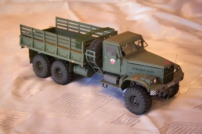 Создан на основе КрАЗ-214Б, от которого унаследована общая компоновка. Среди основных отличий — более мощный и экономичный мотор ЯМЗ-238 и широкопрофильные шины с системой централизованного регулирования давления. Предназначен для транспортировки грузов и личного состава по дорогам и бездорожью.