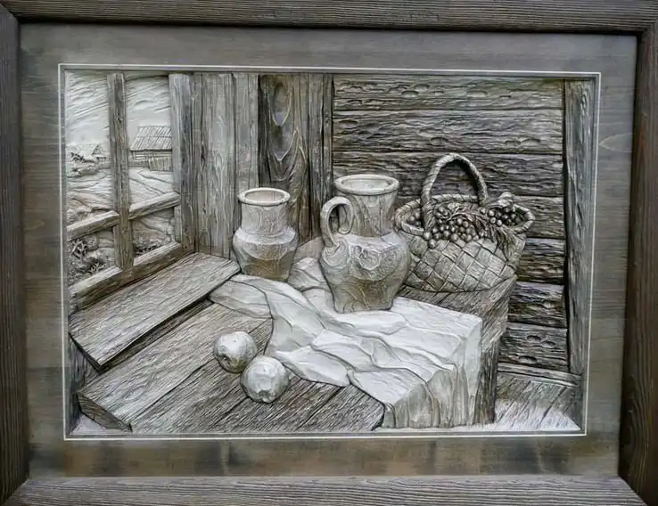 Резные картины из дерева семьи Дубовик, проживающих в Брянске. Они начали свое дело в 1996 году.