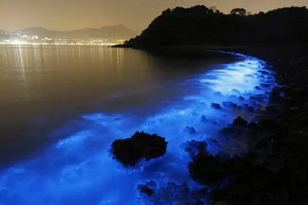 Сегодня мы отправляемся в Гонконг и на нескольких снимках увидим необычное явление — свечение живых организмов в море.