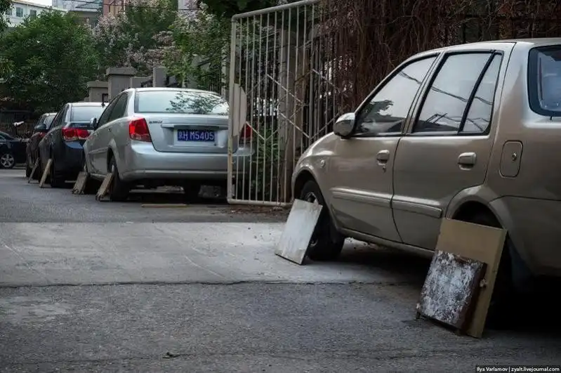 В Китае многие водители во время парковки прикрывают колеса на своей машине куском фанеры или старой дверцей от шкафа. Зачем они это делают?