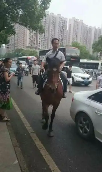 На одной из центральных улиц города Ухань был замечен мужик в одежде офисного клерка верхом на лошади. Как выяснилось позже, он член городского клуба жокеев и устал ежедневно торчать в пробках по пути на работу. Говорит, что лошадь - идеальное решение проблемы.