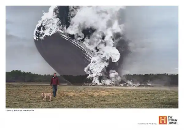 Молодой человек, прогуливающийся с собакой, возможно, и не подозревает, что, буквально, «за его спиной» в 1937 году потерпел крушение печально знаменитый дирижабль Гинденбург, заходя на посадку после очередного трансатлантического рейса. Тогда из девяноста пяти пассажиров спастись удалось только тридцати пяти.