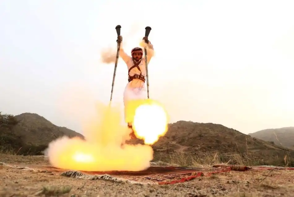 Существует древняя традиция на свадьбу, выпускные или другие празднества, мужчины совершают ритуальные прыжки в виде танцев, при этом стреляя себе под ноги из огнестрельного оружия.