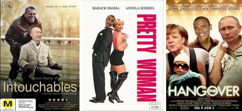 Один из пользователей соцсети Tumblr создал блог, в котором публикует свои версии известных хитов киноэкрана, в роли главных героев на которых выступают влиятельные политики - президент США Барак Обама, президент России Владимир Путин и канцлер Германии Ангела Меркель.