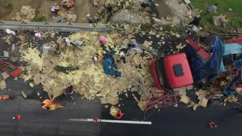 Несмотря на недовольство полиции, местные жители начали собирать птенцов и уносить их домой. Точно так же пытались поступить и проезжавшие мимо водители. По словам водителя грузовика, общая стоимость цыплят составляет 50.000 юаней, или 7800 долларов.