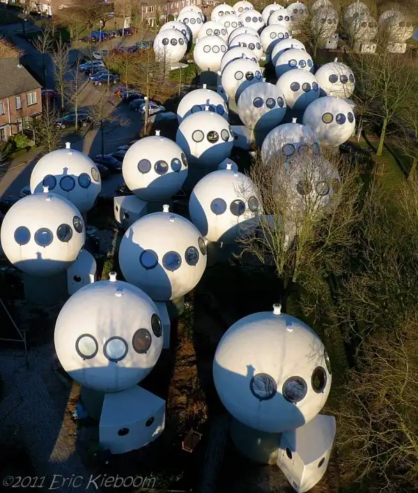 Эти гигантские белые шары не атрибуты фантастического фильма, а настоящие жилые дома в голландском городе Хертогенбос ( перевод «герцогский лес»). Это свое название данная местность получил здесь еще давным-давно, когда тут были охотничьи угодья герцога Генриха I. Существует еще одно «домашнее» название городка — Ден-Бос. Оно стало псевдонимом жившего когда-то в этих местах художника Хиеронимуса Боса ван Акена (Босха).