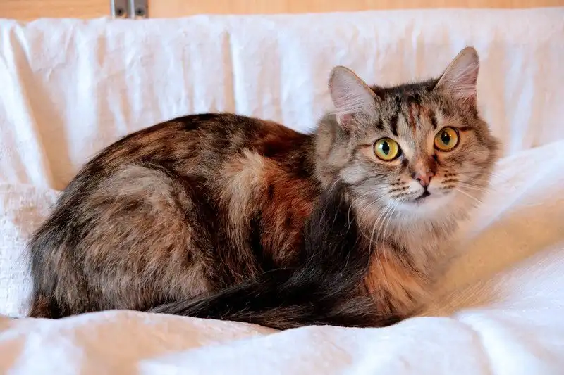 Эмма - очень красивая длинношерстная кошечка необычного окраса, полосатая с рыжими пятнами. Возраст примерно 2 года. Найдена на улице. Очень милая, добрая девочка, ласковая с людьми и другими кошачьими, приятная в общении. Питается готовыми кормами, пользуется лотком. Стерилизована.