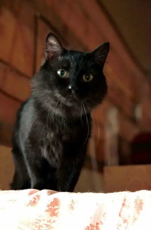 Сильвер - пушистый джентльмен черного окраса, очень красивый, с яркими желтыми глазами. Возраст котика примерно 2 года. Был выловлен из подвала год назад совершенно диким, не пускал первое время к себе в клетку даже для уборки, агрессировал. Постепенно привык. Сейчас хорошо идет на руки, но немного побаивается. Будущему хозяину придется запастись терпением и окончательно приучить кота доверять. Кот очень красивый и благодарный. Имеется дефект - укороченный хвост, причина нам неизвестна, врожденный или приобретенный. Но это совсем не портит внешности кота, напротив, придает котику индивидуальность и шарм. Кот отлично ладит с другими кошачьими. Питается готовыми кормами, пользуется лотком. Кастрирован.