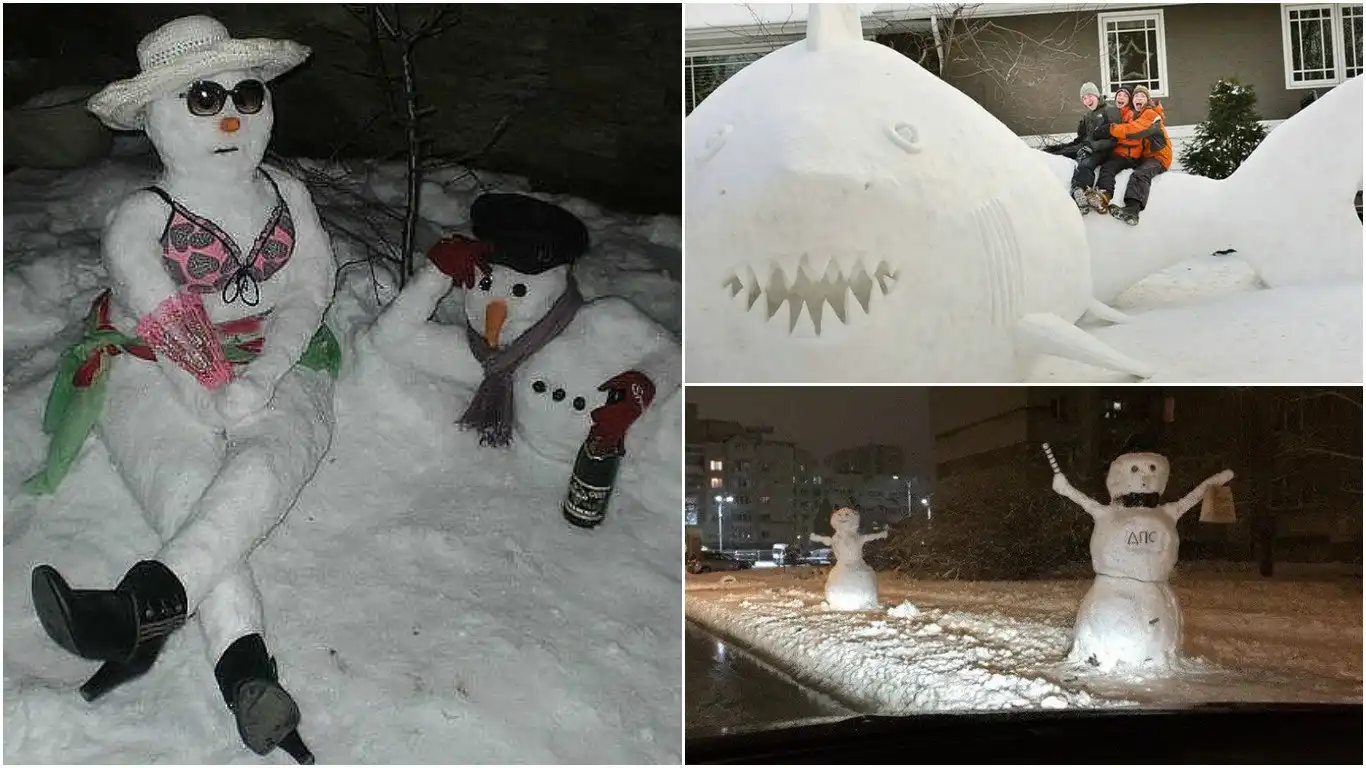 Выпавшему снегу радуются не только дети, но и взрослые, ведь для них - это отличный повод вернуться в детство, вспомнить, как в былые годы лепили снеговиков с друзьями во дворе. Да что там говорить, без снеговика или снежной бабы и зима - не зима! Итак, смотрим, на эти снежные шедевры и заряжаемся позитивом!
