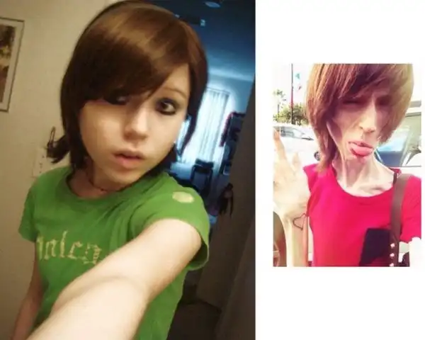 Немало перевидал анорексичек, но эта девушка переплюнула их всех. Раньше была нормальной девчушкой, а сейчас превратилась в ходячий скелет. В прямом смысле слова. Одежду покупает в детских магазинах, судя по всему. Куда смотрят родители?