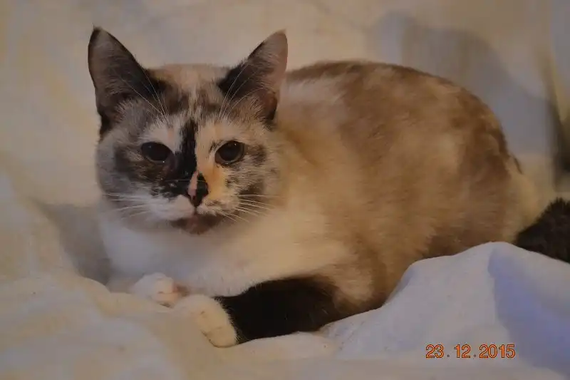 Мозаика - милая миниатюрная кошечка, помесь с пойнтовыми, расположение темных пятнышек совершенно невероятное. Возраст кошечки 1,5-2 года. Доброе, ласковое животное, немного побаивается новых знакомых. Отлично ладит с другими кошачьими. Питается готовыми кормами, пользуется лотком. Стерилизована.