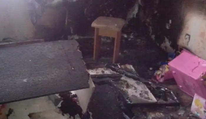 Из-за беспечности некоторых людей на Новый год случаются различные происшествия, которые могут испортить праздник любому человеку. Перед вами квартира, пострадавшая от запуска фейерверка. Салют попал в пластиковое окно, прожог его и оказался в детской комнате, которая была практически полностью уничтожена. К счастью, в тот злосчастный момент в квартире никого не было, однако, по возвращению хозяев их ждала весьма печальная квартира.