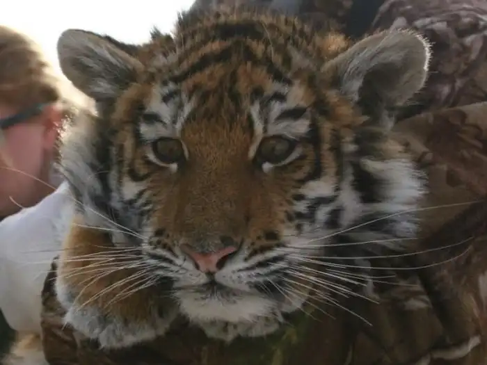В ночь на 29 декабря в Приморье был найден четырехмесячный тигренок, которого чуть было не загрызли собаки. Животное находилось в крайней степени истощения и, по мнению специалистов, не ело около трех недель. На хищника набросились собаки одного из местных жителей, однако, он их отогнал и сообщил о находке в заповедник «Земля леопарда». Малыша доставили в центр реабилитации, где он пошел на поправку. Тигренок уже хорошо питается и ходит в туалет, у него не найдено никаких заболеваний, но специалистов беспокоит практически полное отсутствие подкожного жира и плохое состояние шерсти. Маленькая самка весит 19 кг вместо положенных в ее возрасте 27 кг и находится под пристальным вниманием ветеринаров.