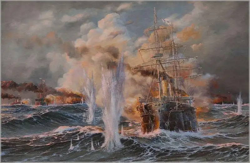 Созданные для дальних океанских рейдов, русские «истребители торговли» не предназначались для серьёзного боя. Однако судьба уготовила им совсем не ту участь, что предполагалась до войны. Звёздный час, навеки прославивший русские броненосные крейсера «Рюрик», «Россия» и «Громобой», настал 1 августа 1904 года – в день жесточайшего сражения с японской эскадрой в Корейском проливе.