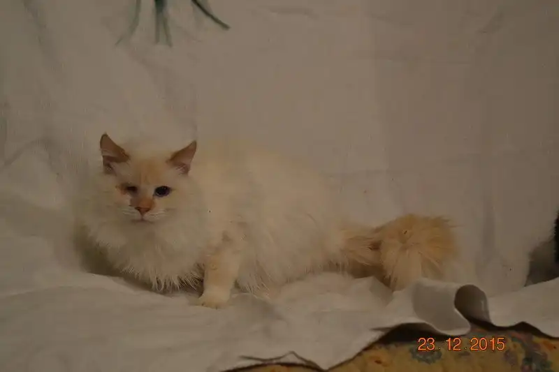 Тофик - пушистый голубоглазый кот ред-пойнтового окраса, похож на балинезийского. Найден на улице. У котика врожденный дефект - не развит правый глазик. Несмотря на это, котик очень симпатичный и нарядный. Очень активный, веселый, добрый, очень ласковый и игривый. Пользуется лотком, питается готовыми кормами. Кастрирован.