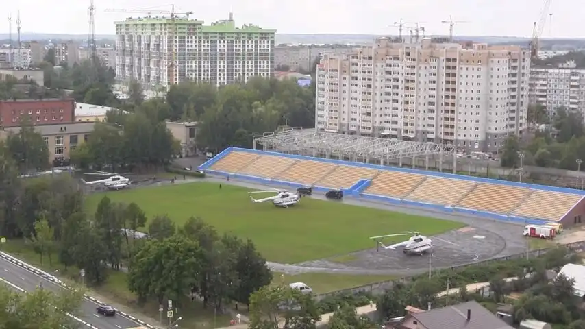 18 июля 2014 года. В Сергиев Посад прилетает Президент России В.В. Путин. Согласно мерам безопасности или федеральных "понтов" глава России летает на трех вертолетах. В первом прилетела многочисленная охрана, которую поджидали бронированные автомобили. В руках у них таинственные зонтики и чемоданчики. Все в черном. Второй борт - запасной, наверно на случай поломки основного. Третий - машина для перевозки главного персонажа, которого в белой рубашке (довольно высокого роста - вровень находящимся рядом) мы видим в окружении охраны и особо приближенных (может быть помощников или руководителей ФСО). Съемку я вела с балкона дома напротив. На крыше СК "Луч" за мной и многим другим происходящим в радиусе 180 градусов наблюдало пытливое око снайперов - наблюдателей.