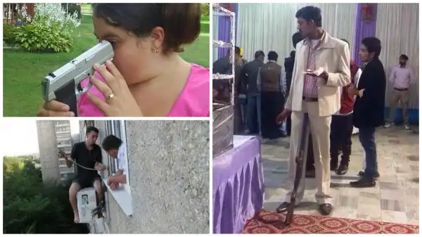 Мы не знаем кто все эти люди на фото и почему они делают то, что они делают. Мы даже не знаем живы ли они после всех своих выходок. Но одно мы знаем точно: с головой у этих ребят явно не всё в порядке. Настолько, что просто от просмотра фотографий уже становится немножко больно, когда пытаешься всё это представить.