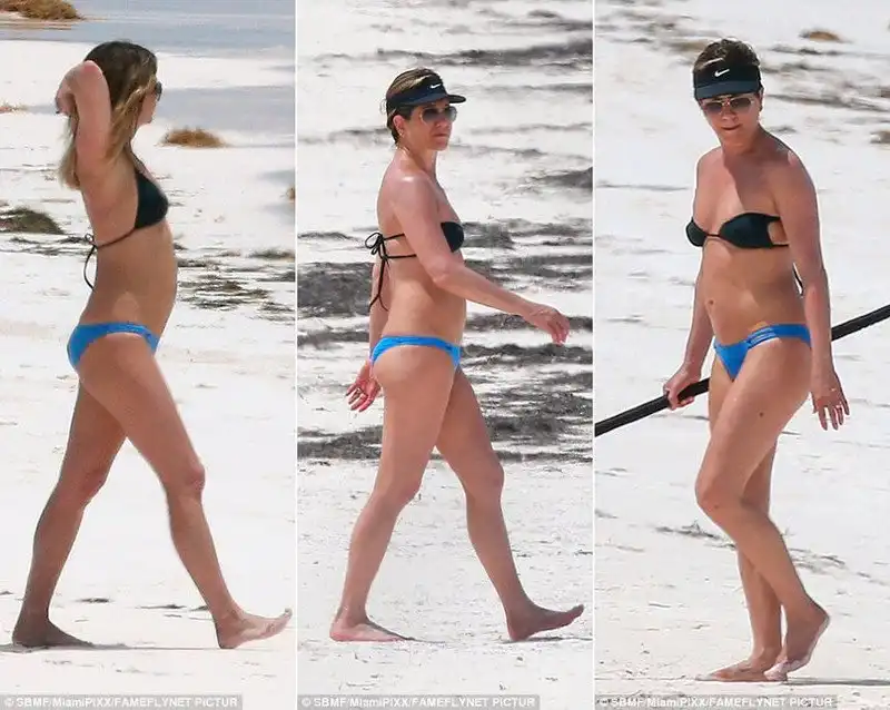 Журналисты заметили округлившийся живот Дженнифер Энистон во время ее отдыха с супругом Джастина Теру на Багамских островах.