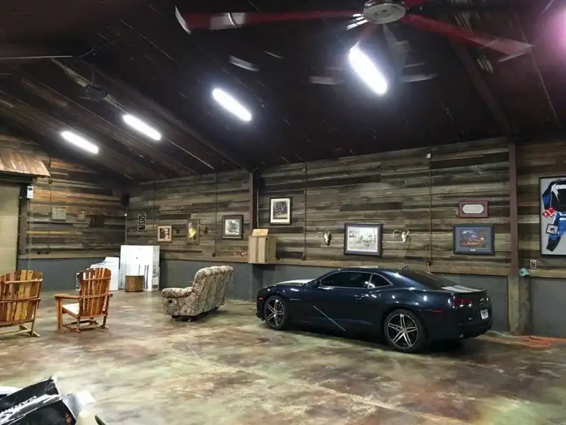 Вот такая крутая мужская берлога «The Barn» (Амбар) находится где-то в США. Интерьер стилизован под охотничий домик. Внутри есть бар, киноткатр, игровые автоматы, бильярд, так же внутри уютно расположились автомобиль и катер.