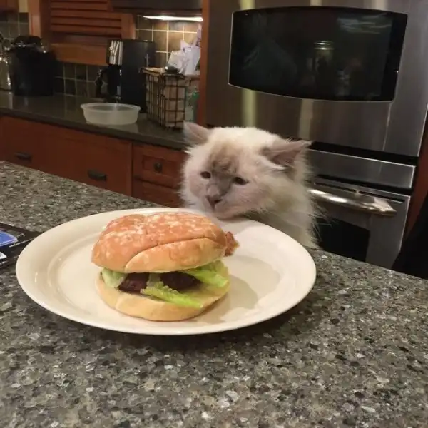 Пользователи в восторге от кота, который сидит перед тарелкой с бургером, и смотрит на нее невероятно печальным взглядом. В соцсетях тут же начали появляться фотожабы. Креизи собрал самые смешные и предлагает своим читателям посмотреть — пообедайте перед просмотром, чтобы не быть как этот котик.