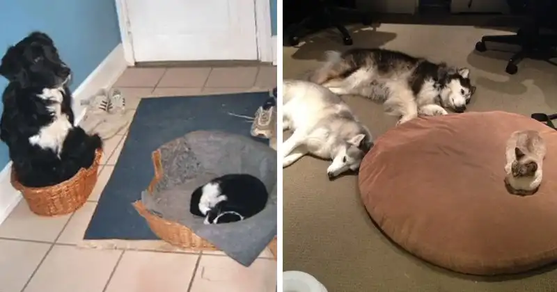 Нигде коту не спится так сладко, как на собачьей подстилке! Бедному псу остается лишь с недоумением смотреть на нахала, выгнавшего его из собственной постели, - или безуспешно пытаться втиснуться на кошачью лежанку. Посмотрите, как это бывает!