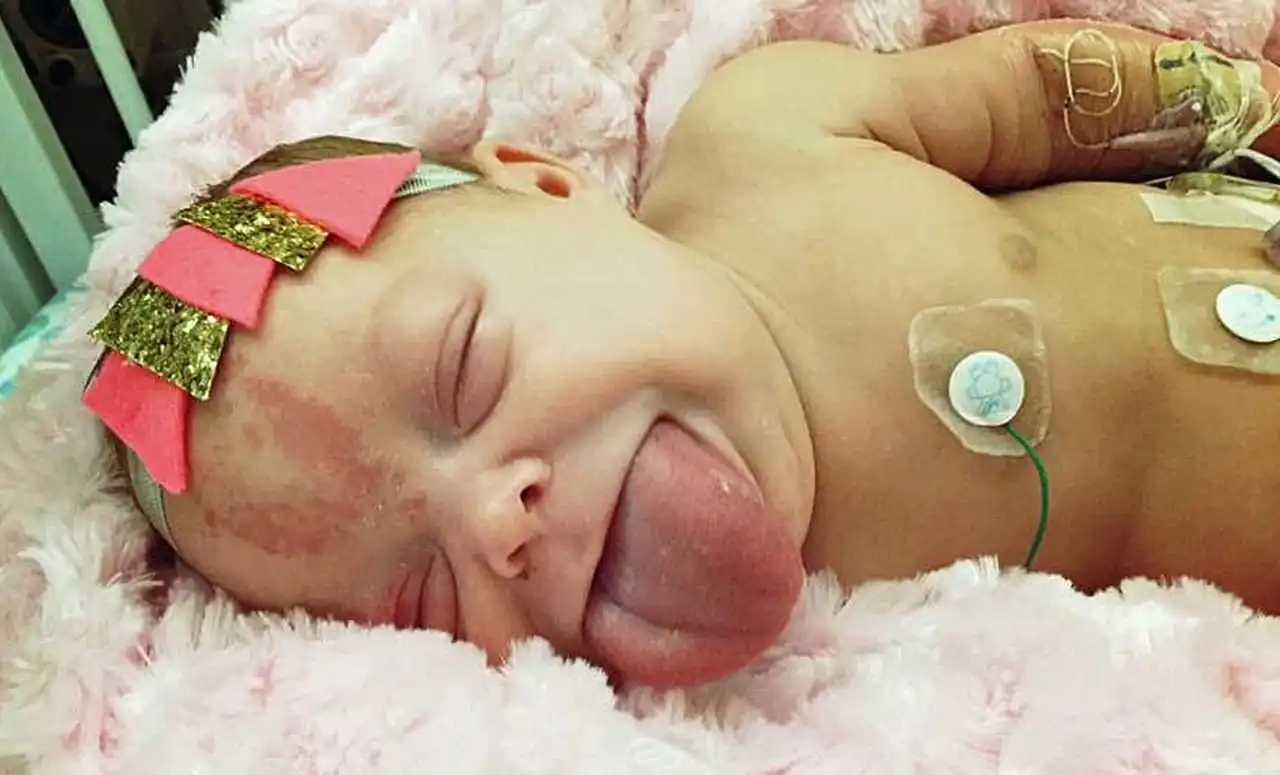Мама девочки, Мэдисон, говорит, что даже не догадывалась о синдроме дочери до самого ее рождения: "Во время кесарева сечения они достали ее и увидели огромный язык". Девочку сразу подключили к аппарату искусственного дыхания.