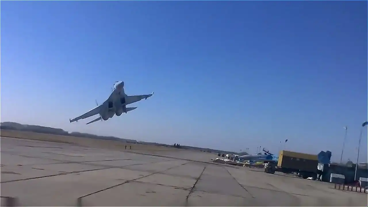 В Интернете опубликовано видео полета истребителя Су-27, предположительно, украинских ВВС на предельно низкой высоте над головами наблюдавших за его полетом людей.