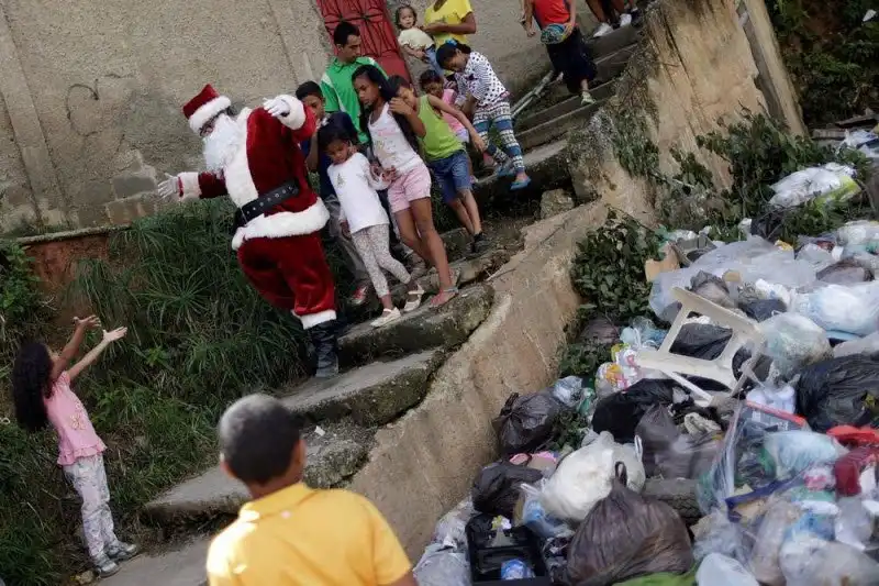 Сейчас в Венесуэле очень тяжелая экономическая ситуация, но дети остаются детьми и ждут Рождественское чудо. Они пишут письма Санта-Клаусу и хотят получить подарок. 11 декабря Санта-Клаус посетил жителей трущоб Петаре в Каракасе и подарил им немного Рождественского настроения.