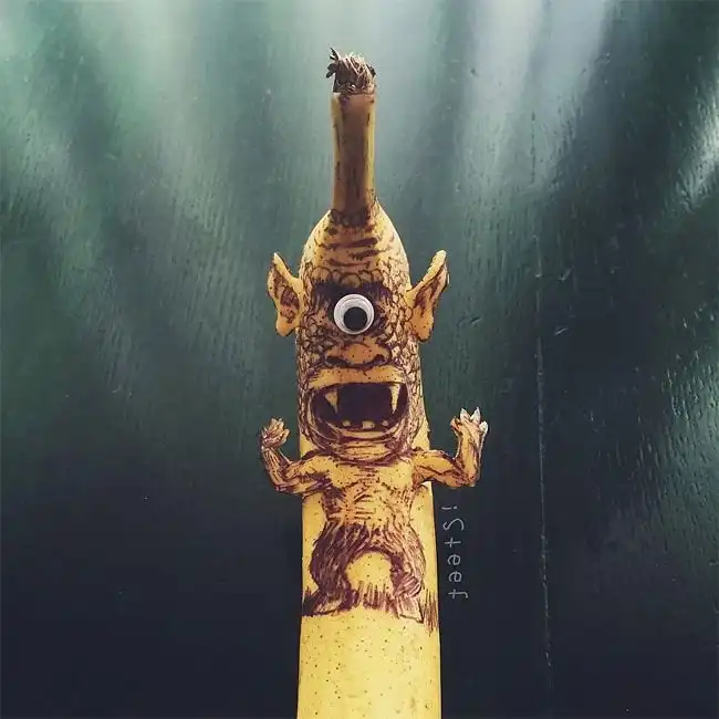 Графический дизайнер и художник Стефан Бруше из Голландии в свободное от работы время мастерит забавные скульптуры из бананов. Частично эффект достигается с помощью рисования и частично - с помощью вырезания.