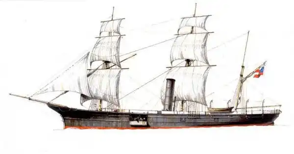 Уже несколько дней в океане бушевал шторм. Одинокий корабль, скрипя снастями двух своих мачт и отчаянно дымя трубой, шел против ветра, прорезая волны насквозь, которые перекатывались через него, унося с палубы любые незакрепленные предметы. Причиной столь непривычного его поведения был изогнутый наподобие древних трирем острый нос, благодаря которому этот корабль был очень похож на чернобокий корабль Одиссея. В Бискайском заливе было все так же: он чуть ли не целиком скрывался в штормовых валах, а те лишь очень неохотно выпускали его из своего плена. Особенно тяжело приходилось кочегарам. Они знали – палубные матросы им, конечно, рассказали, что это «самый мокрый» корабль среди всех прочих, и что если его вдруг накроет посильнее, то… «не выплывет». От этого было вдвойне страшно, но надо было кидать уголь в топку. А корабль, корабль продолжал вопреки всему идти вперед и волны, как и прежде, бились о его металлические борта.