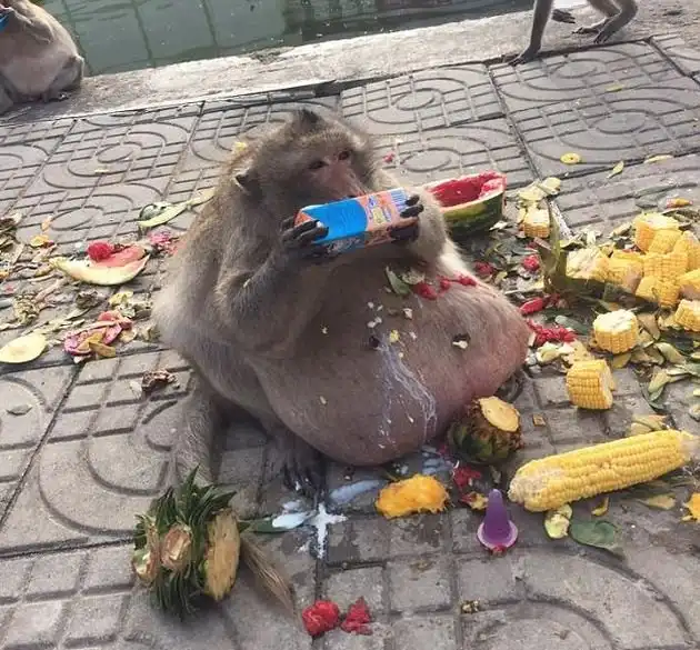 Макака по кличке Uncle Fatty («Толстый Дядя»), живущая неподалеку от рынка Бангкока, будет посажена на жесткую диету. Стараниями местных жителей, постоянно подкармливавших животное кукурузой, ананасами, кокосами, попкорном, лапшой и прочими продуктами, вес макаки достиг 15 кг, что в два раза выше нормы. Обратившие на макаку внимание зоозащитники забрали ее в ветеринарную клинику, где ей предстоит выдержать строгую диету. После того как вес Uncle Fatty придет в норму его отпустят обратно на волю.