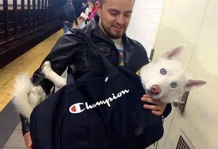 Руководство нью-йоркского метро запретило хозяевам собак перевозить своих питомцев в вагонах, если они не помещаются в различные сумки или рюкзаки. Но они не учли тот факт, что хозяева животных всегда найдут выход из сложившейся ситуации.
