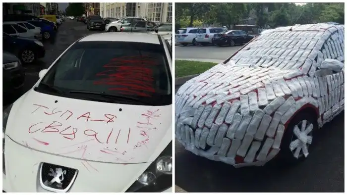 Взаимоотношения между людьми - тонкая вещь. Никто не знает где эта грань, которую не стоит переступать. Эти автовладельцы кого-то обидели, и кара мести настигла их сполна. Только не понятно, причём тут бедные машинки.
