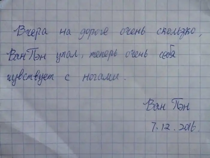 Несмотря на то, что эти китайцы еще не в полной мере овладели русским языком, они уже используют его в своей письменной речи. Будучи прилежными учениками, они пишут своему преподавателю объяснительные записки, где рассказывают о том, почему не смогли посетить очередной урок. Причины отсутствия и стиль их изъяснения обязательно заслуживают нашего с вами внимания.