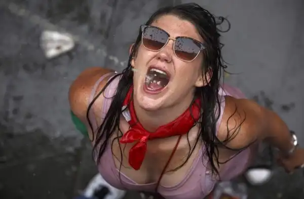 В Испанском городе Памплоне состоялся ежегодный забег с быками. В спринте с быками обычно принимают участие около 2 тысяч бегунов. Сам забег длится чуть меньше трех минут. Его протяженность составляет 875 метров. В течение этого времени участники, одетые в белое с красными шарфами на шее, убегают от дюжины быков.