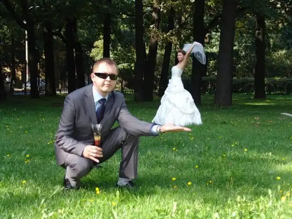 Один из самых распространенных штампов у свадебных недофотографов. Причем для получения таких фотографий есть два способа: игра с перспективой и Фотошоп. В обоих случаях фотографии выглядят не очень.