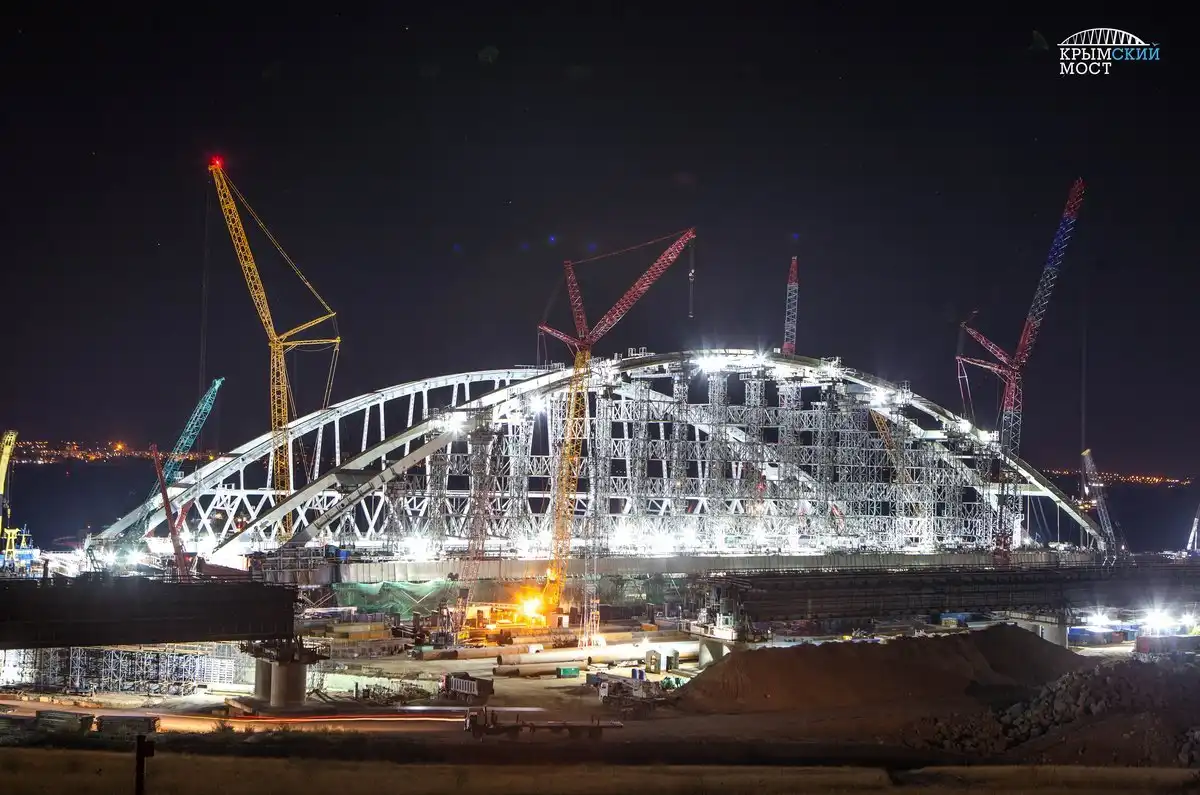 Перемещение и подготовка железнодорожной арки для установки на понтоны.