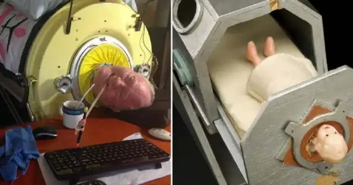 "Железные легкие" - аппарат, изобретенный в 1928 году и спасший тысячи жертв полиомиелита с параличом диафрагмы. Эти люди не могли дышать, умирая от удушья. "Железные легкие" дышали за них: пациент помещался в аппарат, и за счет перепадов давления внутри воздух закачивался в легкие, продлевая человеку жизнь. Некоторые, оправившись, скоро вставали на ноги, но другие жили в "железных легких" годами и десятилетиями. Согласитесь, даже думать об этом жутко!
