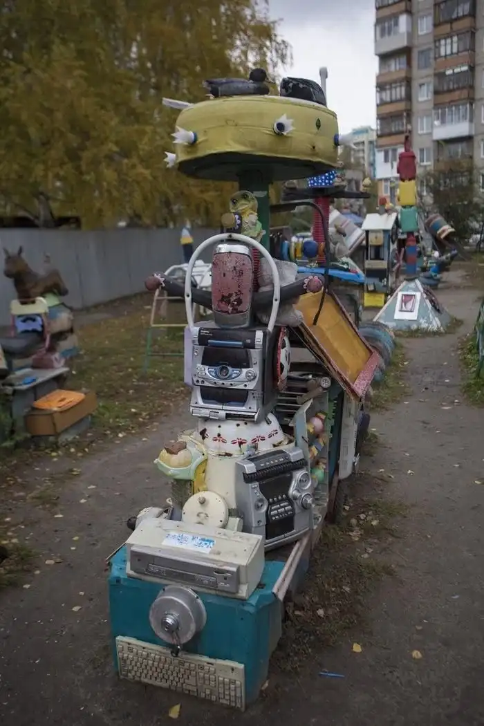 Игровая площадка "Дошкольник" в спальном районе Барнаула может вогнать в тоску, кого угодно, поскольку собрана она из старого хлама. Но на ребятишек площадка производит совершенно противоположное впечатление, ведь здесь все, что их душе угодно: ручки, кнопки, рычаги, клавиши и колеса.